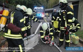 Datum & Uhrzeit: 2012-10-01 Autor: Tanja Ochs, HSt; Axel Klumbach, Feuerwehr Bad Rappenau 110 Atemschutzgeräteträger der Feuerwehr üben den ErnstfallEs ist unerträglich heiß und stockdunkel. Flammen schlagen aus dem Ofen, Schreie hallen durch den Raum, Rauch erschwert das Atmen. Zwei