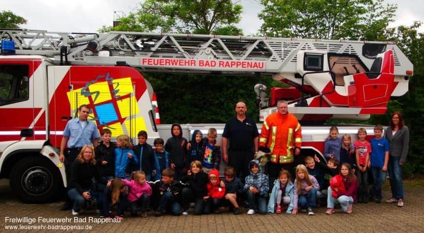 Datum & Uhrzeit: 2012-09-10 Autor: Axel Klumbach, Feuerwehr Bad Rappenau Am Freitag, den 1.Juni 2012, war es soweit. Der Ausflug zur Feuerwehr Bad Rappenau stand auf dem Programm. Die Kinder der Kernzeitbetreuung aus Zimmerhof und Bad Rappenau trafen sich mit ihren Betreuerinnen vor