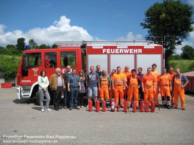 Datum & Uhrzeit: 2010-06-25 Autor: Axel Klumbach, Feuerwehr Bad Rappenau Am Montag, den 14.06. versammelten sich die ganzen Mitarbeiter der Straßenmeisterei Bonfeld auf dem Betriebsgelände. Durch die Freiwillige Feuerwehr Bad Rappenau, Abt. Bonfeld, fand eine Feuerlöscherübung statt. Sinn der Übung war der Umgang