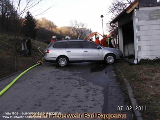 PKW brennt in Garage